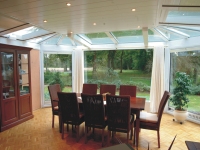 Nowoczesna oranżeria pełni rolę nie tylko całorocznego ogrodu, ale także pomieszczenia, które gromadzi ciepło dla całego domu i w ten sposób przyczynia się do obniżenia zużycia energii przez budynek. W energooszczędnej oranżerii szyby i wypełnienia muszą zapewniać - zarówno latem, jak i zimą - należytą termoizolacyjność, sprzyjać utrzymaniu odpowiedniej temperatury przez cały rok, nie dopuszczając do nadmiernego ogrzania się jego wnętrza latem i wyziębienia zimą. System VERANDA służy do wykonywania dachów izolowanych termicznie o współczynniku Uw dla połaci już od 1,6 W/(m²K). W zestawieniu z witrynami pionowymi w systemach MB lub PVC jesteśmy w stanie projektować oranżerie o wysokiej izolacyjności termicznej.
